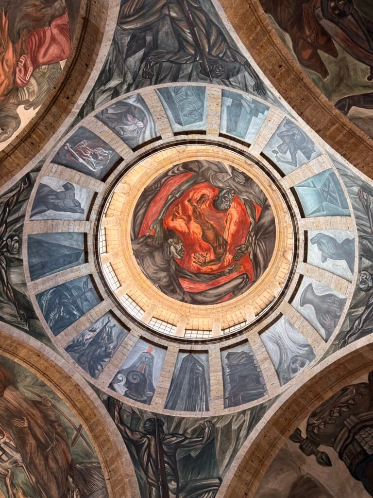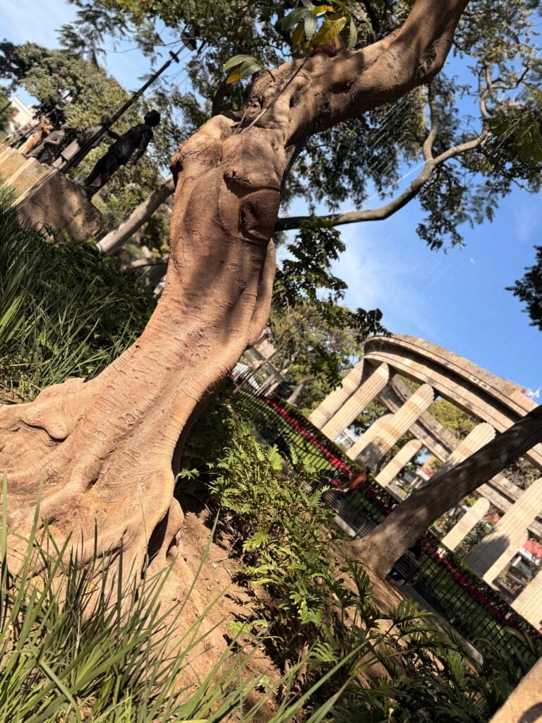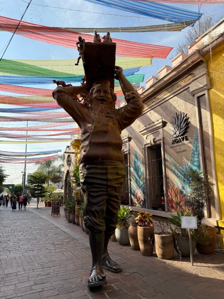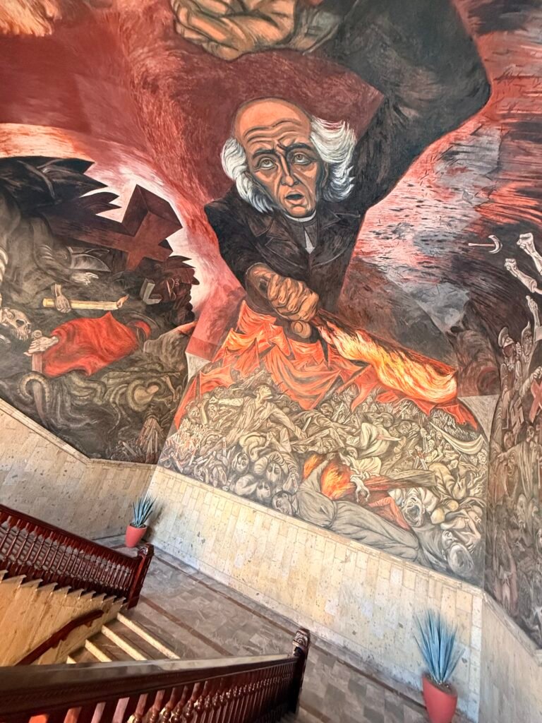 Historic downtown Guadalajara feels grounded in the best way. Palacio de Gobierno was my favorite stop—huge, quiet, and beautifully balanced, with open courtyards that make you slow down. Seeing José Clemente Orozco’s Hidalgo en llamas in person was more powerful in a way that photos don’t capture. Nearby, the Guadalajara Cathedral and the Rotonda de los Jaliscienses Ilustres tie history and art together. Surrounding Rotonda de los Jaliscienses Ilustres are statues honoring important people who have significantly impacted national culture and ideas, such as Irene Robledo García, who is a writer, poet, and one of the first women in higher education in Jalisco. Being the holiday season, the Christmas lights still up added a soft twinkle to the whole area, making it feel even more special to walk through.